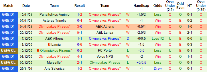 + Thống kê 10 trận gần nhất của Olympiakos