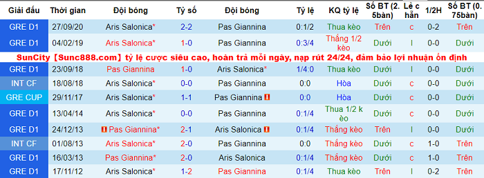 Trước giờ bóng lăn, Aris Salonica toàn thua 3 lần so tài gần nhất thuộc khuôn khổ giải VĐQG Hy Lạp diễn ra trên sân của PAS Giannina. Aris Salonica thậm chí chỉ ghi được 1 bàn ở chuỗi 3 thất bại này.