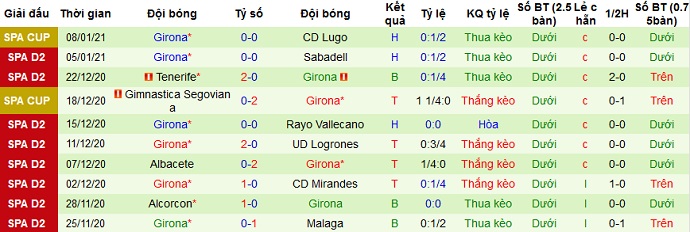 Ở 5 trận gần đây Girona có được 2 trận thắng, 2 trận hòa và để thua 1 trận nhưng cả 2 trận thắng của đội bóng là đều tại cúp nhà vua. Trên sân khách thành tích của Girona cũng không quá tệ với 3 trận thắng và để thua 2 trận trong 5 lần du đấu gần nhất.