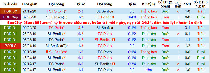 Phong độ và thống kê đối đầu Porto - Benfica gần đây