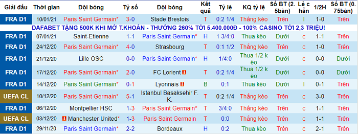 - Thống kê 10 trận gần nhất của PSG