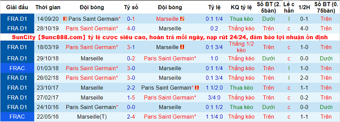 Phong độ và thống kê đối đầu PSG - Marseille gần đây