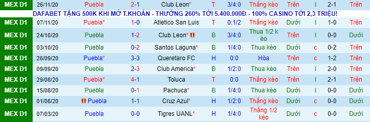+ Lịch sử đối đầu Puebla vs Guadalajara Chivas