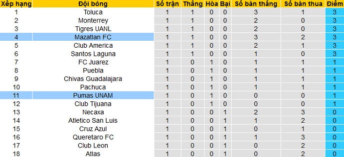 Hiện tại sau vòng đầu tiên của giai đoạn lượt về Pumas UNAM mới chỉ có được 1 điểm và đang tạm đứng ở vị trí thứ 13 trên bảng xếp hạng. Trong khi đó Mazatlán đã có được 3 điểm sau trận đầu tiên và tạm đứng ở vị trí thứ 5 của giải đấu. Tuy nhiên ở lượt đi Mazatlán chỉ về đích ở vị trí thứ 14, không có nổi 1 suất tham dự play-off.