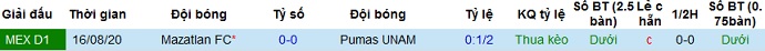Tỷ lệ kèo Pumas UNAM vs Mazatlán