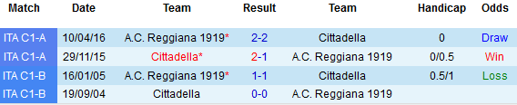 + Lịch sử đối đầu Reggiana vs Cittadella