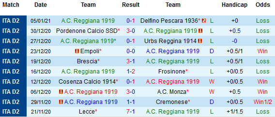 Các cầu thủ chủ nhà thậm chí còn đối mặt với nguy cơ rớt hạng khi đang đứng thứ 3 từ dưới lên với với vỏn vẹn 15 điểm sau 16 trận. Tình hình hiện tại vẫn chưa có tín hiệu tích cực được Reggianna phát đi với cả 6 vòng gần đây chỉ biết đến hòa và thua.