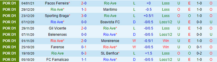 + Thống kê 10 trận gần nhất của Rio Ave