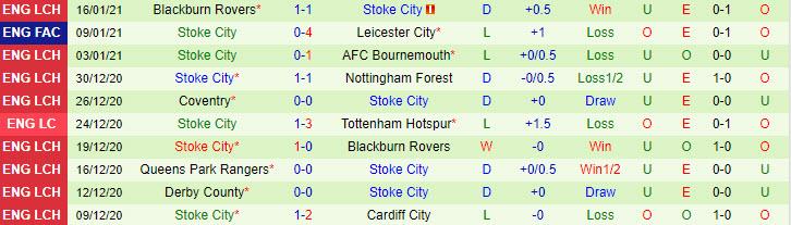 + Thống kê 10 trận gần nhất của Stoke