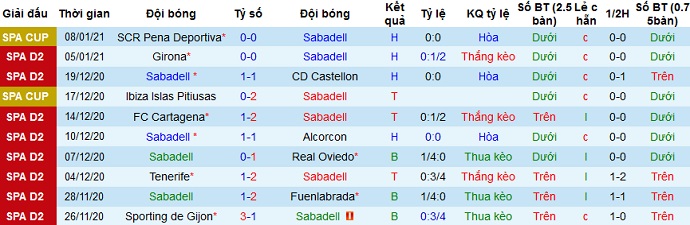Trong 5 trận gần đây Sabadell cũng có được 2 trận thắng, 2 trận hòa và để thua 1 trận bao gồm cả các trận tại cúp nhà vua. Tại giải vô địch Sabadell cũng đang bất bại trong 4 trận gần nhất nhưng chỉ có được 1 trận thắng và 3 trận hòa.