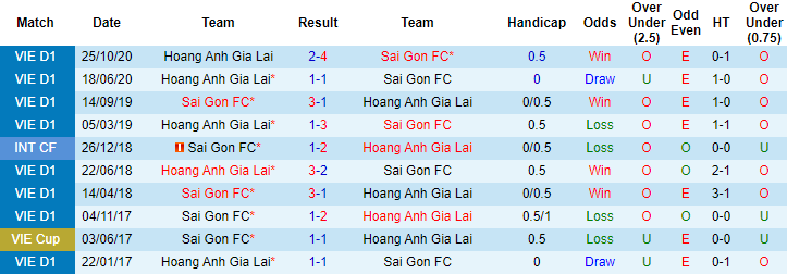 Hai mùa giải gần đây HAGL hoàn toàn lép vế khi đối đầu Sài Gòn FC. Theo đó, 4 trận đối đầu HAGL ở mùa giải V-League 2019 và 2020, Sài Gòn FC đạt thành tích bất bại với 3 chiến thắng và 1 trận hòa. 2 lần gần đây làm khách trên sân của Sài Gòn, đội bóng phố Núi toàn thua với tỷ số 1-3.