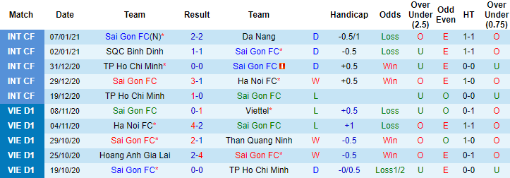 + Thống kê 10 trận gần nhất của Sài Gòn