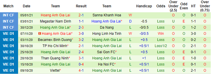 + Thống kê 10 trận gần nhất của HAGL