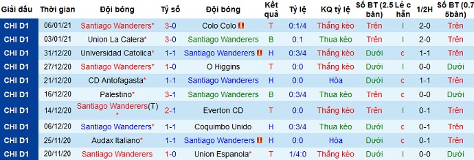 + Soi tỷ lệ kèo châu Á: Với thành tích ấn tượng của Santiago Wanderers trên sân nhà nên việc đội chủ nhà được đánh giá là đội cửa trên với kèo -0,5 cũng là điều hợp lý. Đáng nói là trong 7 lần đối đầu gần nhất giữa hai đội, chiến thắng đều thuộc về đội chủ nhà.