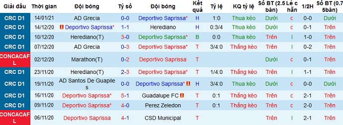 Tính cả mùa giải trước Saprissa đang có 2 trận thắng, 2 trận hòa và 1 trận thua ở 5 trận đấu gần đây. Trên sân nhà đội bóng cũng đang bất bại ở 4 trận gần nhất với 3 trận thắng và 1 trận hòa.