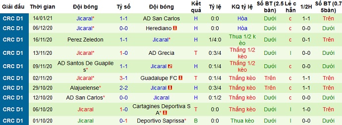 Trong khi đó Jicaral ở giai đoạn lượt đi cũng thi đấu tại bảng B nhưng chỉ đứng áp chót với 18 điểm sau 16 vòng đấu. Hiện tại Jicaral cũng đã có được 1 điểm sau trận đấu đầu tiên của lượt về và đang tạm đứng ở vị trí thứ 6 của bảng xếp hạng.