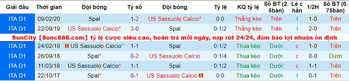 Phong độ và thành tích đối đầu Sassuolo - SPAL gần đây