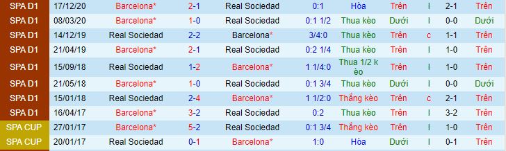 Tỷ lệ kèo Sociedad vs Barcelona