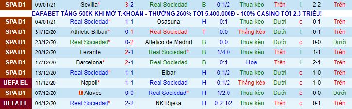 + Thống kê 10 trận gần nhất của Sociedad