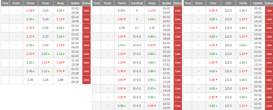 Dẫu vậy, tới thời điểm trận đấu sắp bắt đầu, các nhà điều hành châu Á đã có những thay đổi đáng nghi. Cụ thể, họ đã hạ kèo chấp của trận đấu này xuống còn tỷ lệ cược hòa được thua, không ai chấp ai.