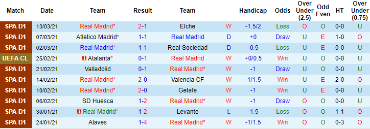 + Thống kê 10 trận gần nhất của Real Madrid