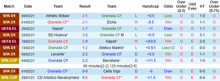 + Thống kê 10 trận gần nhất của Granada