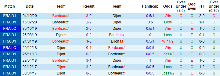 + Lịch sử đối đầu Dijon vs Bordeaux