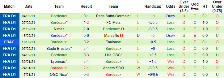 + Thống kê 10 trận gần nhất của Bordeaux