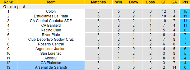 Phong độ và thống kê đối đầu Arsenal Sarandi vs Platense