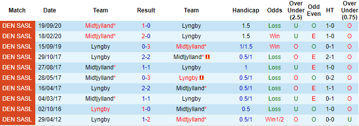 + Lịch sử đối đầu Lyngby vs Midtjylland