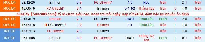 + Lịch sử đối đầu Utrecht vs Emmen