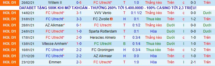 FC Utrecht đã có tới 6 vòng đấu liên tiếp bất bại khi họ có được 5 trận thắng và 1 trận hòa. Màn hủy diệt Willem II với 6 bàn cách biệt ngay trên sân đối thủ mới đây đã giúp FC Utrecht tiếp tục kèo dài phong độ ấn tượng của mình cũng như nuôi hi vọng chen chân vào Top 4 khi mà khoảng cách lúc này chỉ là 4 điểm và họ còn 1 trận chưa đấu.