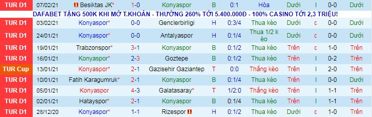 + Thống kê 10 trận gần nhất của Konyaspor