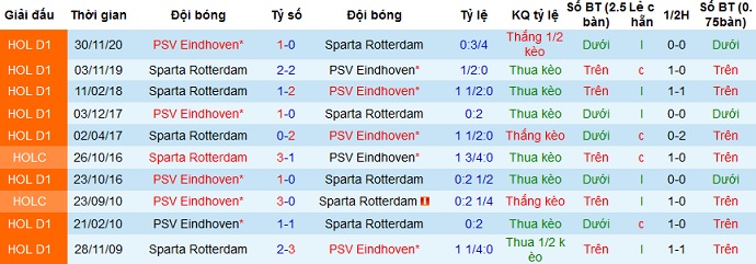 + Soi tỷ lệ kèo châu Á: Sparta Rotterdam cho dù thi đấu khá tiến bộ nhưng vẫn bị đánh giá thấp hơn đối thủ khá nhiều khi đội khách là cửa trên với kèo chấp -0,75. Đây cũng là điều hợp lý khi ở 5 lần đối đầu gần nhất trước đó PSV Eindhoven chiếm ưu thế gần như tuyệt đối với 4 trận thắng và 1 trận hòa.