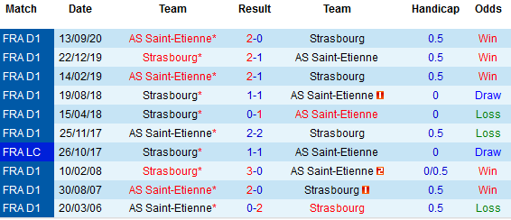 + Soi tỷ lệ kèo châu Á: Theo tỷ lệ châu Á, Saint-Etienne giành chiến thắng tới 4 trong 5 trận đối đầu gần nhất giữa 2 đội. Lúc này Strasbourg cũng thiếu điểm tựa cho dân chơi với số trận thắng kèo thấp nhất Ligue 1 từ đầu mùa với vỏn vẹn 31.58% số trận.