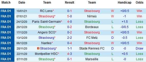 + Thống kê 10 trận gần nhất của Strasbourg