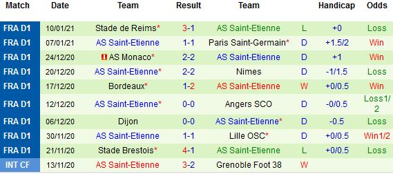 + Thống kê 10 trận gần nhất của Saint-Etienne
