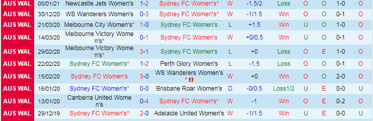 Phong độ và thống kê đối đầu Sydney FC (W) - WS Wanderers (W) gần đây:
