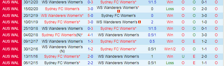 + Lịch sử đối đầu Sydney FC (W) vs WS Wanderers (W)