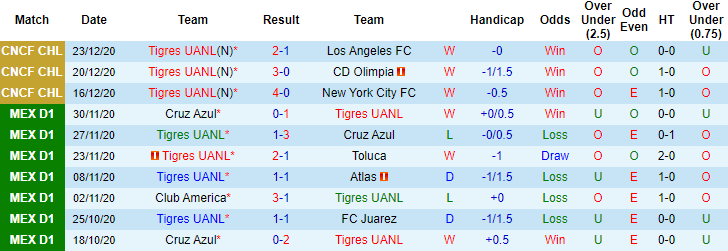 + Thống kê 10 trận gần nhất của Tigres UANL