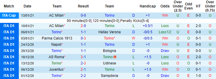 + Thống kê 10 trận gần nhất của Torino