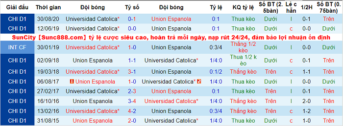 4/6 trận gần nhất của Universidad Catolica không xuất hiện quá 2 bàn thắng. 3 lần đối đầu gần nhất giữa họ với Union Espanola cũng có kịch bản tương tự. Vì vậy, màn tái đấu vào thứ Sáu (15/1) không hứa hẹn nhiều pha lập công.