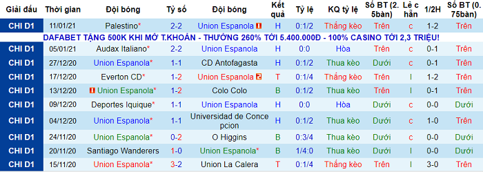 - Thống kê 10 trận gần nhất của Union Espanola