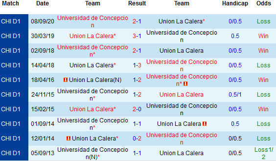 + Lịch sử đối đầu Union La Calera vs Univ de Concepcion