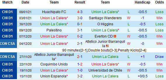 + Thống kê 10 trận gần nhất của Union La Calera
