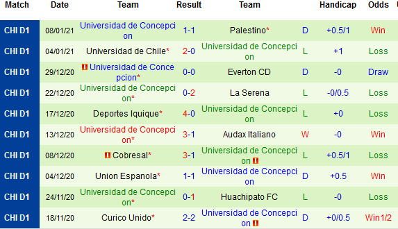 + Thống kê 10 trận gần nhất của Univ de Concepcion