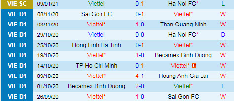 + Thống kê 10 trận gần nhất của Viettel