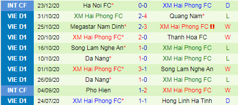 + Thống kê 10 trận gần nhất của Hải Phòng