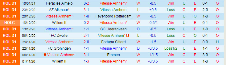 + Thống kê 10 trận gần nhất của Vitesse Arnhem