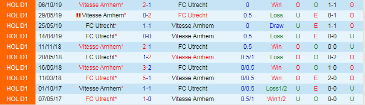 Phong độ và thống kê đối đầu Vitesse Arnhem - Utrecht gần đây: